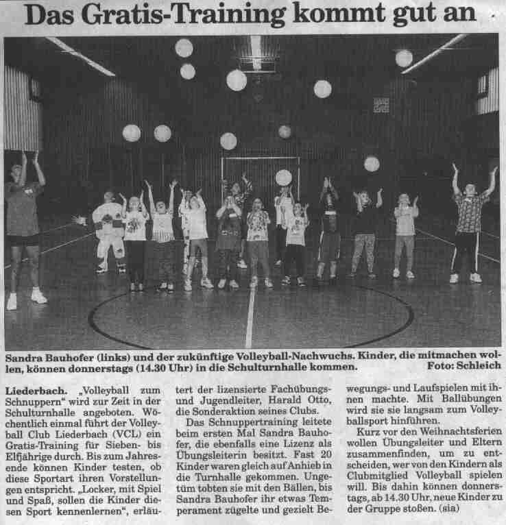 Bericht unseres neuen Angebotes "Spiel, Spaß und Sport für Kinder" im Höchster Kreisblatt vom 21.11.1998