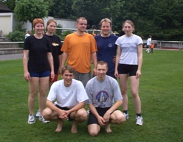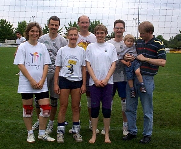 | Samstag vormittag wurden noch schnell die Felder und die Musikanlage aufgebaut und die letzten Vorbereitungen getroffen, damit es dann endlich um 13°° losgehen konnte. Leider gab es hier noch eine Verzögerung, da wir noch auf 2 Mannschaften warteten, aber dank des Handyzeitalters, sagten beide Teams ihre Teilnahme in letzter Minute noch ab. So startete das Turnier mit nur 15 Volleyballmannschaften. Die Gruppen kamen auch dieses Jahr wieder aus allen Teilen Deutschlands, von Köln -Bonn bis Altötting, sowie natürlich die Teams aus den "Nachbar Gemeinden". Die Mannschaften tobten sich auf dem englischen Rasen von Liederbach aus und boten, bei nicht gerade schönem aber trockenem Wetter am Samstag, herrliche Volleyballspiele. Denn die Wettermeteorologen sagten für Samstag Regen, Regen und noch mal Regen voraus. Und so wurde der Turnierleiter sogar zum Prediger: " Und Gott muss ein Volleyballer sein". Der Samstag mit dem offiziellen Teil des Turniers neigte sich dem Ende zu, und jeder hatte seinen Spaß gehabt. Doch das Orga -Team hat sich zum krönenden Abschluss des Abends noch eine Besonderheit einfallen lassen. | ||||||