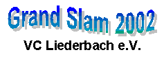 Aber es war ein herrliches Turnier mit viel Spaß und viel Lob. Daher an dieser Stelle noch einmal der Dank an ALLE, die Hand anlegten um diesen wunderbaren 8.Grand -Slam zu realisieren. Und so freuen wir uns schon wieder auf nächstes Jahr zum 9.Grand -Slam 2003 in Liederbach. Same procedure as every year. |