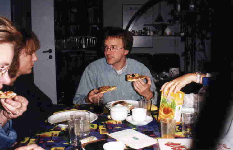 Pizza-Essen bei Claudia, man beachte