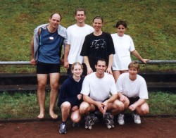 | Auch in diesem Jahr regnete es wieder in Breuberg, dieses Jahr aber nur einmal - von Turnierbeginn bis -ende. Auch in diesem Jahr haben wir uns davon wieder nicht unterkriegen lassen. und waren mit drei Mannschaften am Start. Es spielten die Damen BL, die Herren sowie eine Mixed-Mannschaft der Damen KL: | ||||||||||||||||||||||||||||||||||||